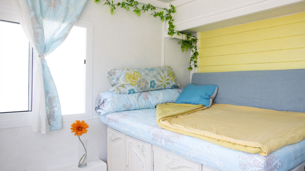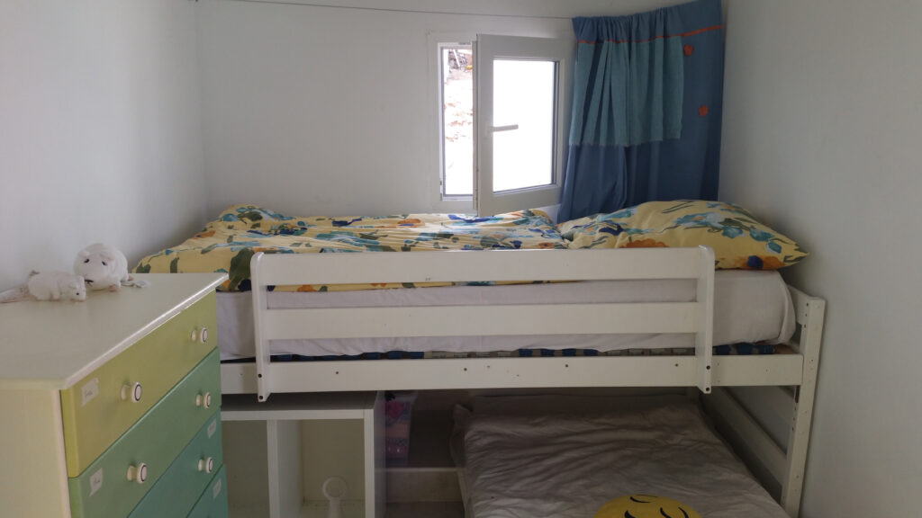 - 2 double beds (one 1.40, one 1.55 m wide)